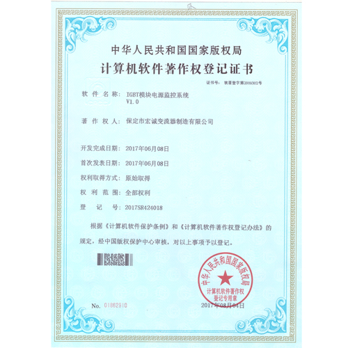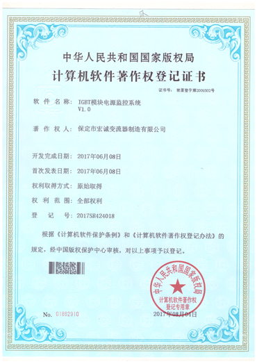 計(jì)算機(jī)軟件注冊(cè)權(quán)登記證書——IGBT模塊電源監(jiān)控系統(tǒng)V1.0
