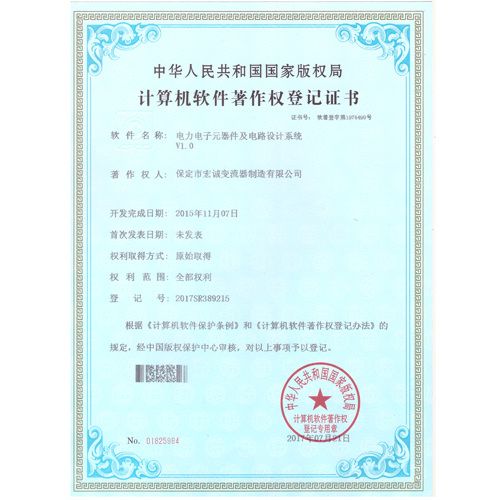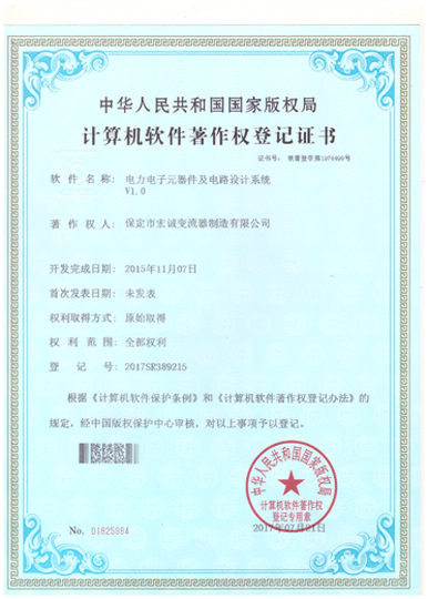 計(jì)算機(jī)軟件注冊(cè)權(quán)登記證書——電力電子元器件及電路設(shè)計(jì)系統(tǒng)V1.0