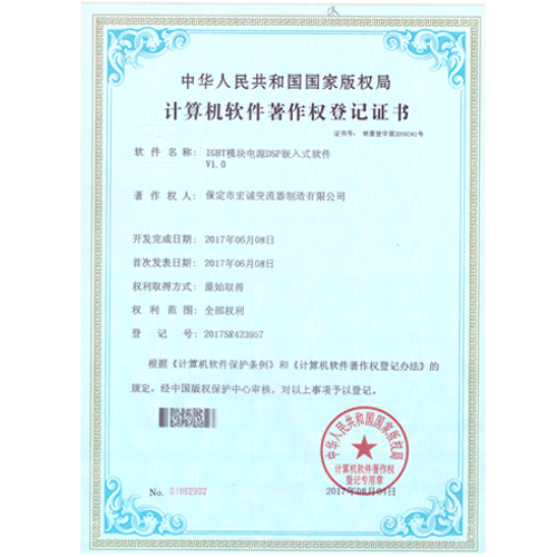 計(jì)算機(jī)軟件注冊(cè)權(quán)登記證書——IGBT模塊電源DSP嵌入式軟件V1.0