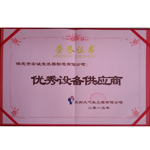 2015年榮獲五洲大氣社工程有限公司優(yōu)秀設(shè)備供應(yīng)商單位